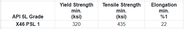 CS API 5L X46 PSL1 Pipes Mechanical properties: