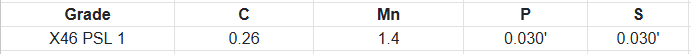 API 5L X46 PSL1 Pipes Chemical Composition :