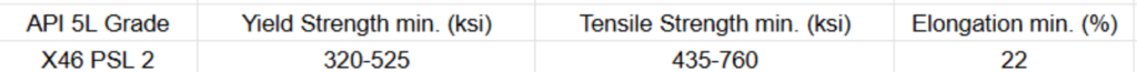 CS API 5L X46 PSL2 Pipes Mechanical properties: