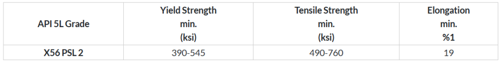 CS API 5L X56 PSL2 Pipes Mechanical properties: