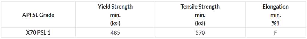 CS API 5L X70 PSL1 Pipes Mechanical properties: