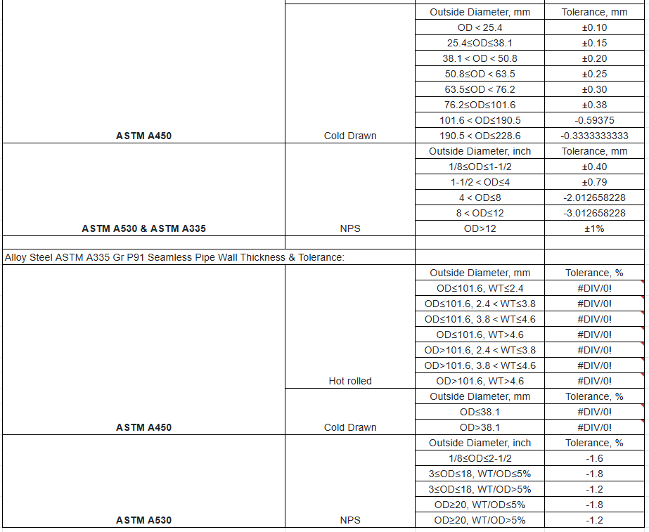 AS ASTM A335 Gr P91 Seamless Pipe Outside Diameter & Tolerance: