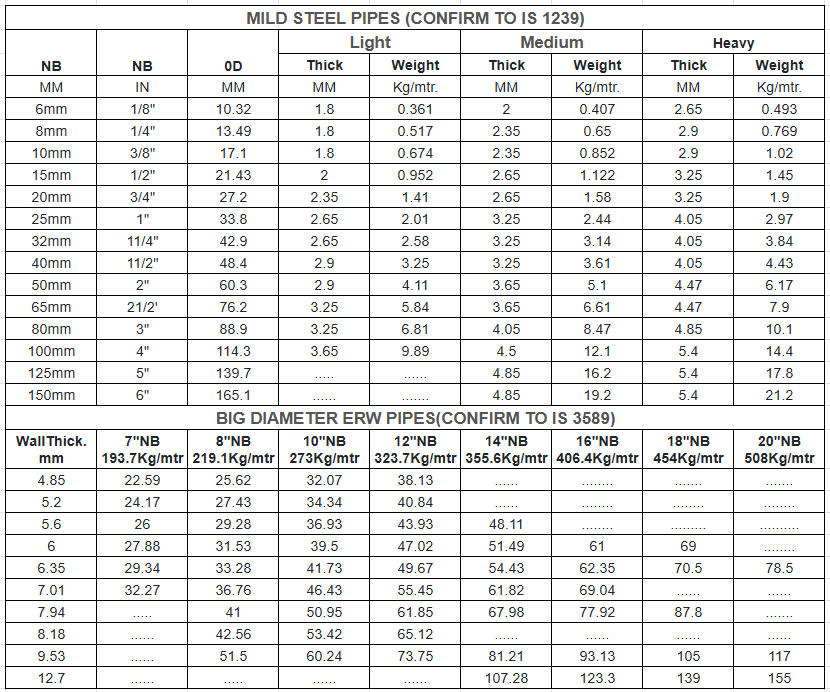 IS1239 Light Class Pipes, IS 1239 Mild Steel Welded Pipes, IS 1239 Medium Class Pipes Exporters, IS 1239 Heavy Class Pipes Distributors, IS 1239 MS Big Diameter Pipes Supplier In Mumbai.